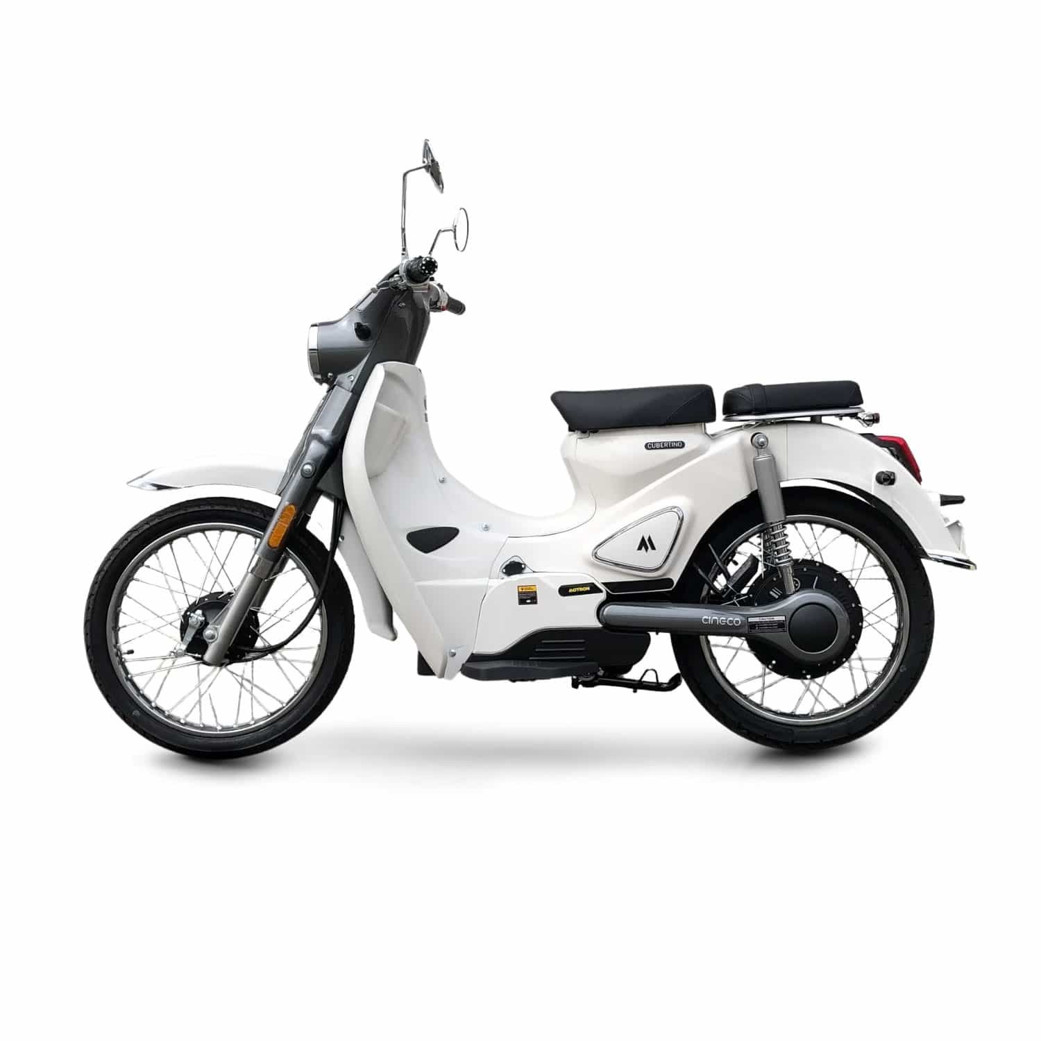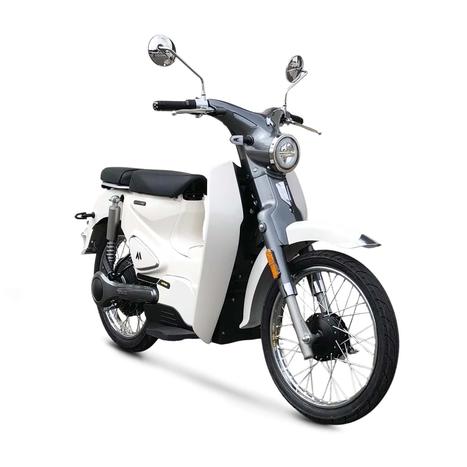 Le Motron Cubertino est un scooter électrique équivalent 50 cm3. Vintage et néo rétro, il est équipé de grandes roues à rayon. Pensé pour un usage urbain, il est accessible sans permis et limité à 45 km/h.