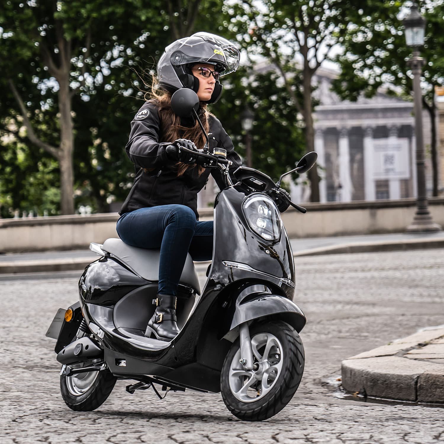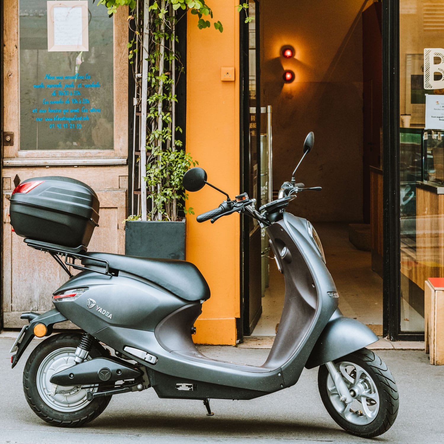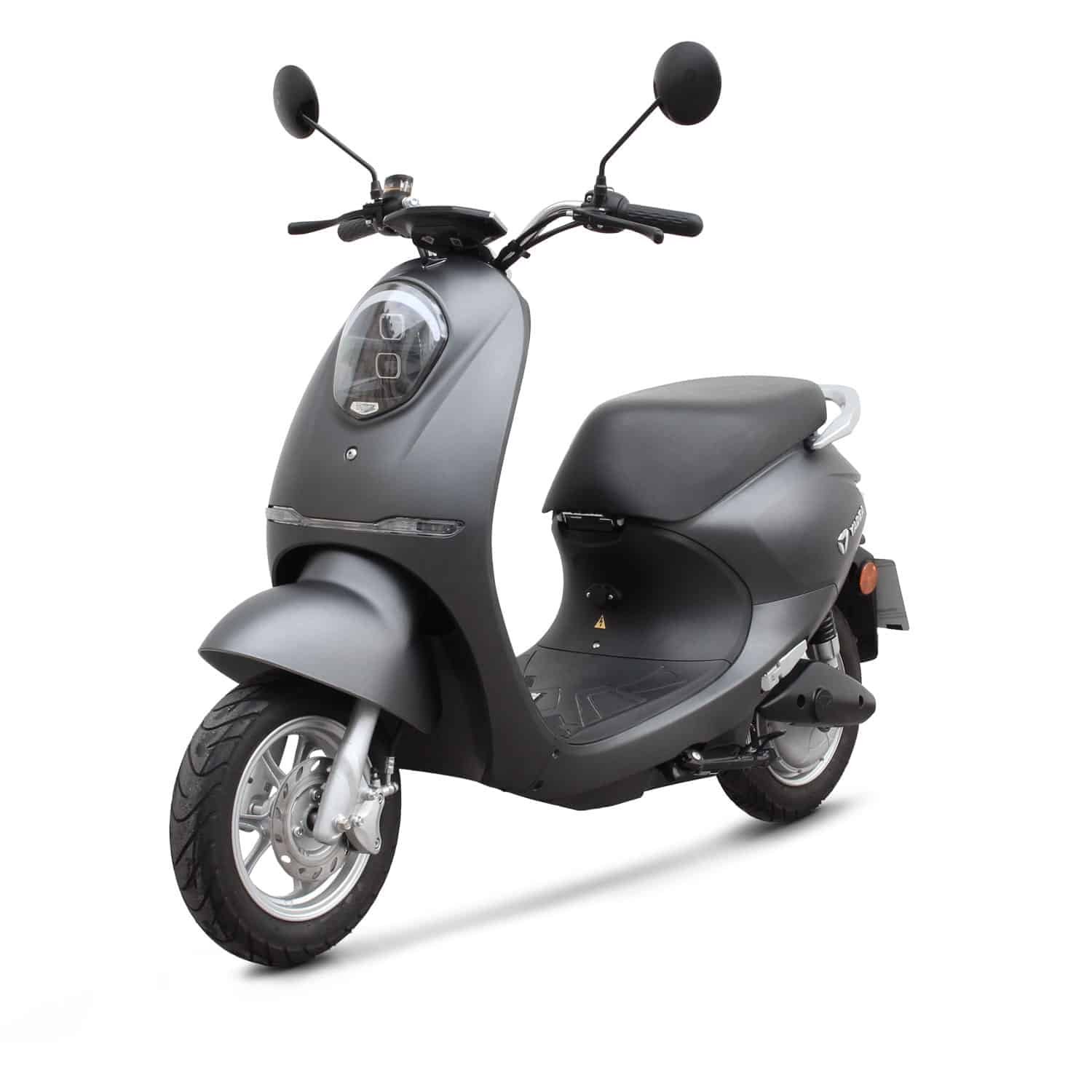 Très accessible, le Yadea C-Umi est un scooter électrique équivalent 50 cm3. Grâce à sa batterie située sous la selle, son autonomie maximale est de 45 kilomètres.